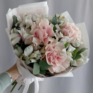Букет «7 белых альстромерий и 3 розовых гербер»